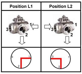 • L1 : passage du fluide entre n°1 et 2, n°3 : fermé